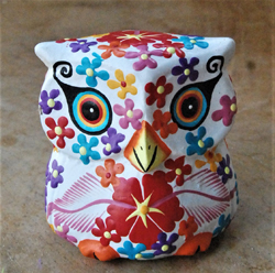 GUFO IN LEGNO DIPINTO A FIORI CM 5X5