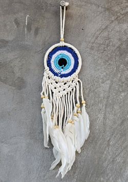 DREAM CATCHER UNCINETTO MOTIVO DEVIL EYE CON MACRAME E PIUME CM 9X32