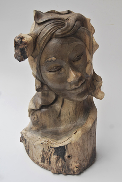 MASCHERA DANZATRICE BALINESE CON RAMI E FOGLIE CM 32