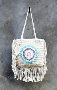 BORSETTA IN COTONE ROTONDA LAVORATA A MACRAME COMB. UNCINETTO CM 30