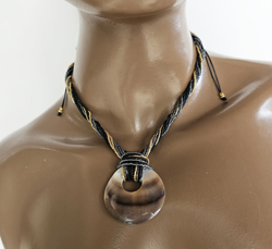 COLLARINO IN PERLINE GIAPPONESI MGB 15/0 CON 8 FILI E CIONDOLO DI MADREPERLA RONDO CM 4