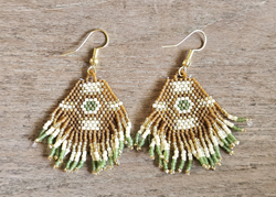 ORECCHINI CON MICROPERLINE GIAPPONESI MGB 15/0 SQUARE WAJIK KIWIR CON FRANGE E GANCETTI GOLD PLATED