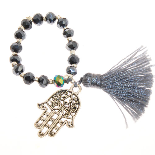 ANELLI ELASTICO TASSEL KRISTAL FATIMA HAND COLORE ARGENTO