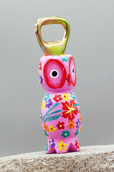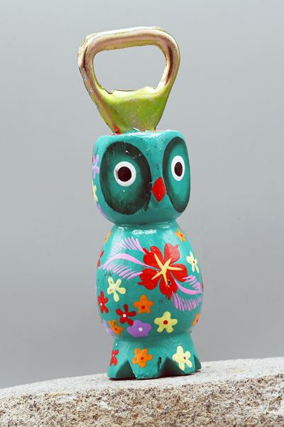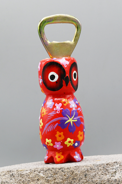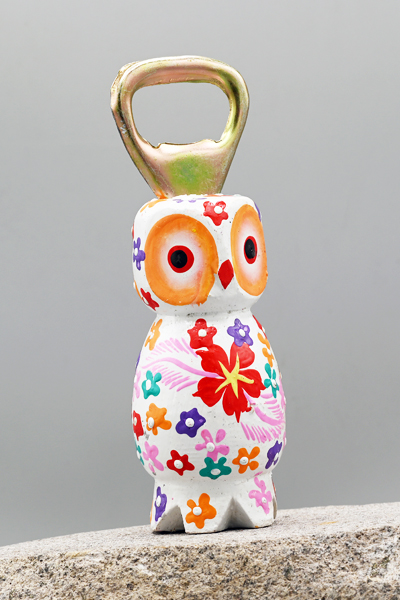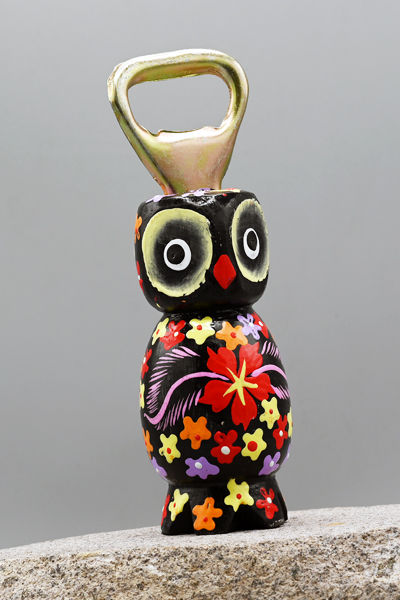 APRIBOTTIGLIE GUFO IN LEGNO DIPINTO A FIORI