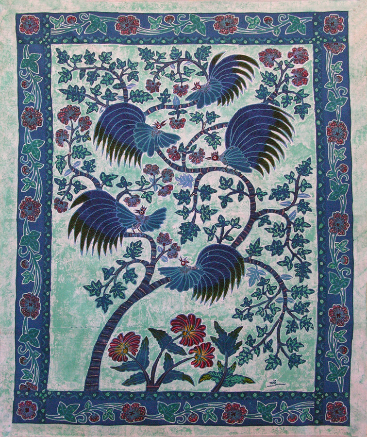 BATIK UCCELLI VERDI AUTORE DARJIE CM 75X90
