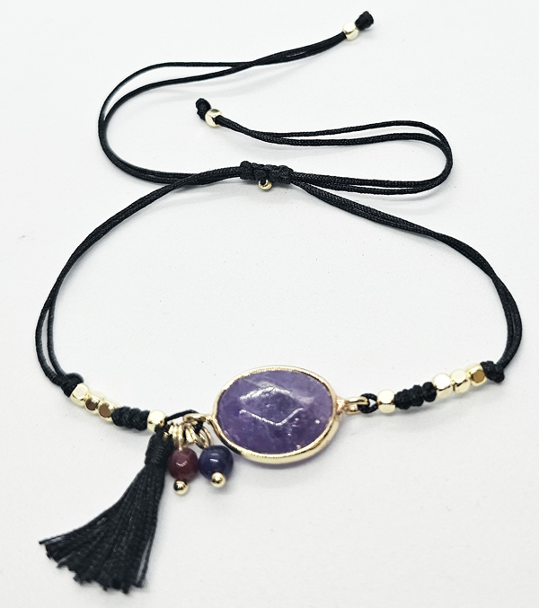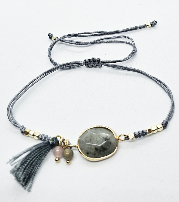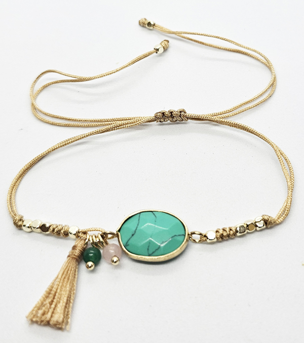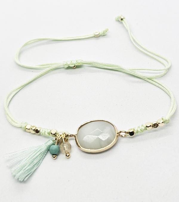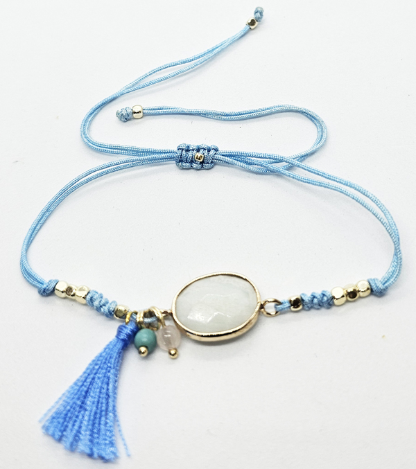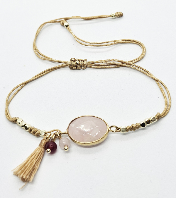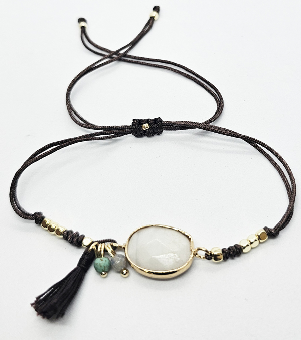 BRACCIALE/CAVIGLIERA STRING CON MEDAGLIONE IN QUARZO BIANCO SU OTTONE, CON TEZEL COMB PIETRE DURE E PERLINE GOLD PLATED