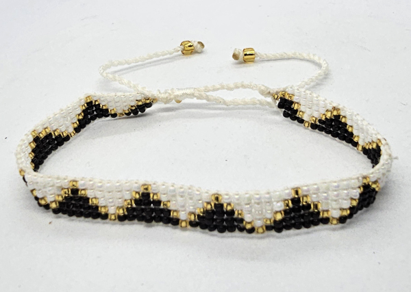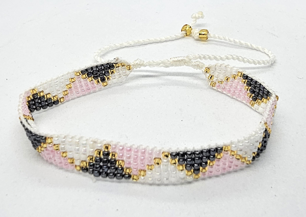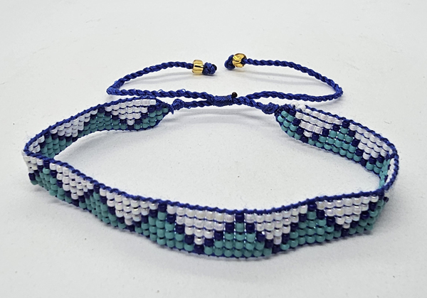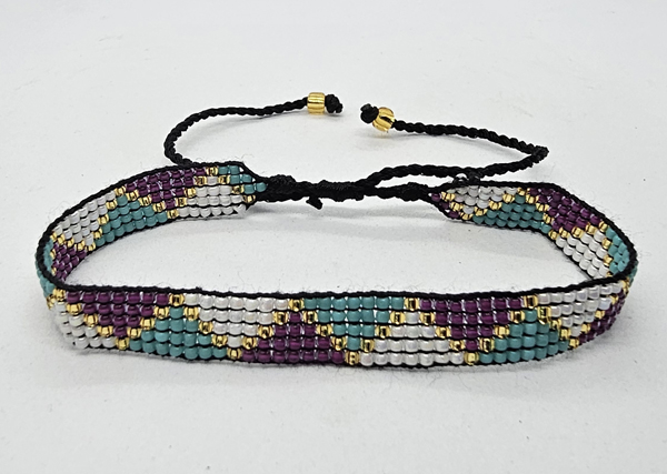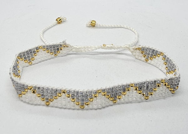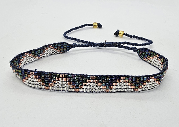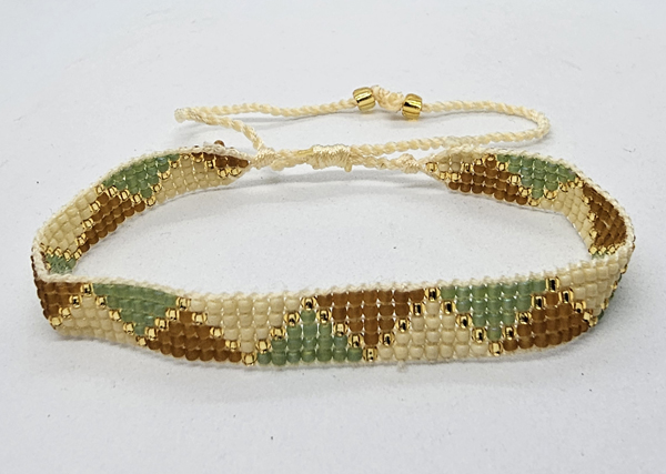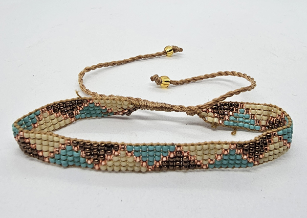 BRACCIALE CON PERLINE GIAPPONESI 15/0 A TELAIO 5 FILI MOTIVO GUNUNG, CHIUSURA REGOLABILE