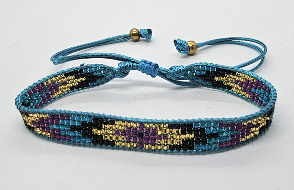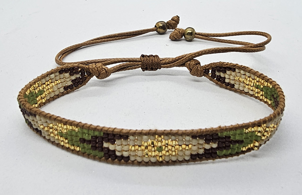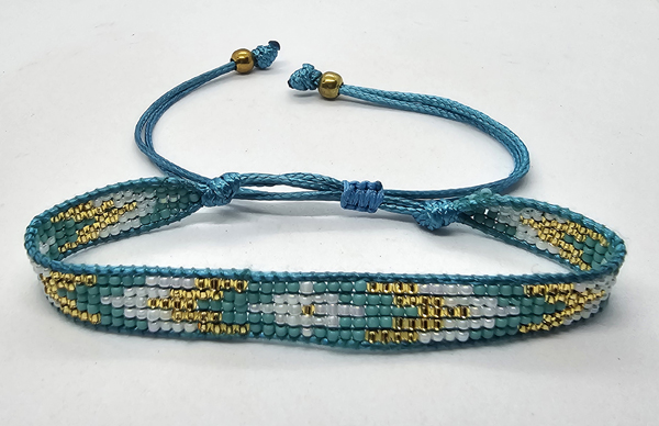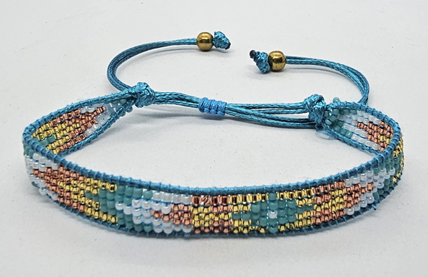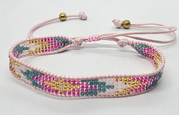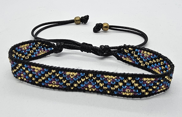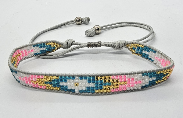 BRACCIALE CON PERLINE GIAPPONESI MATZUNO 15/0 LAVORAZIONE A TELAIO CON CORDINO COREANO, CHIUSURA A MACRAMÉ REGOLABILE (5 ROW) 5 LINE DIAMOND