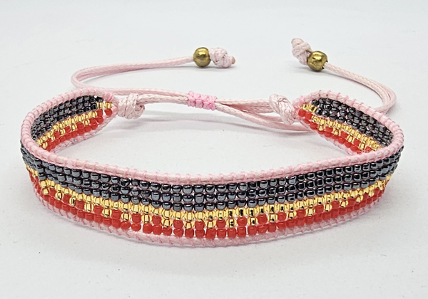 BRACCIALE CON PERLINE GIAPPONESI MATZUNO 15/0 LAVORAZIONE A TELAIO CON CORDINO COREANO, CHIUSURA A MACRAMÉ REGOLABILE (6 ROW) 6 LINE MISCELANOUS