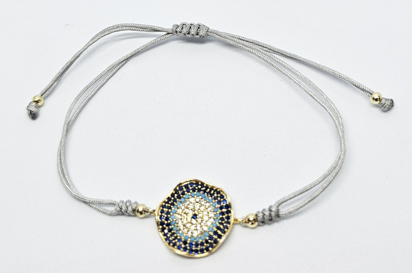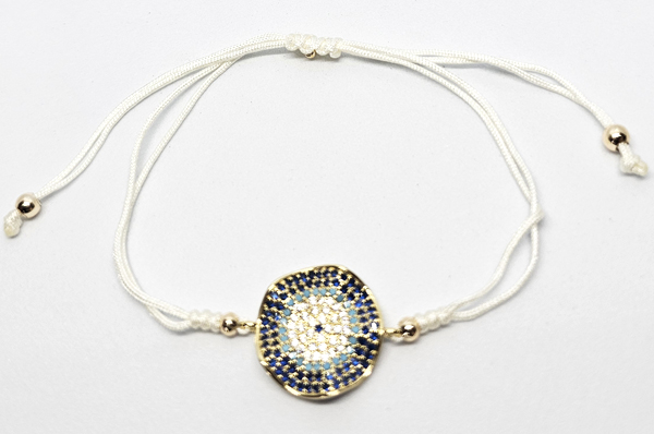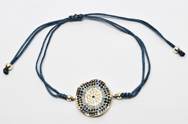 BRACCIALE STRING CON ZIRCONI SU METALLO GOLD PLATED CON DISCO ONDULATO NERO TURCHESE E BIANCO