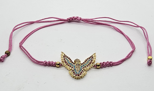 BRACCIALE TEMALI CON CORDINO COLORATO E MEDAGLIA A FORMA DI AQUILA IN METALLO GOLD PLATED CON ZIRCONI