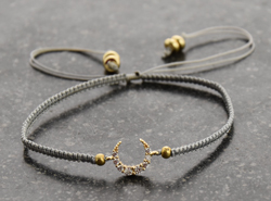 BRACCIALE TEMALI IN FILO DI SETA CON LUNA E MICRO ZIRCONI BIANCHI GOLD PLATED