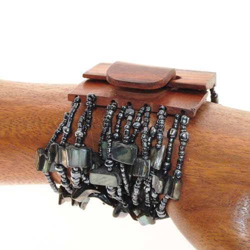 BRACCIALI ELASTICI 14 FILI NUGED MIX CON FIBBIA IN LEGNO