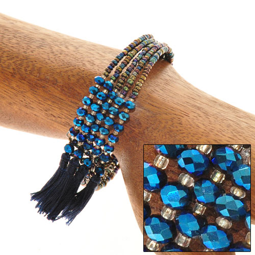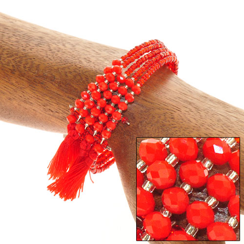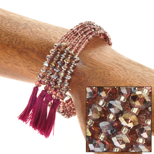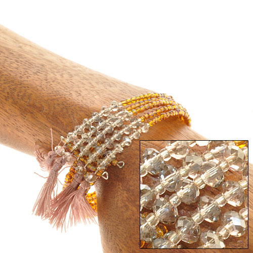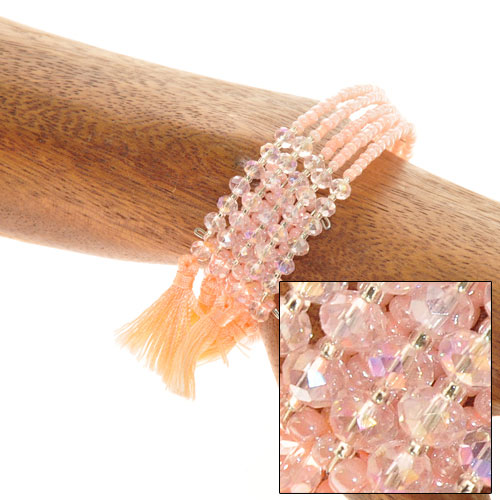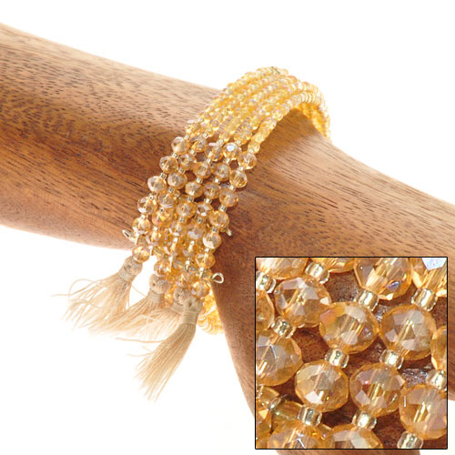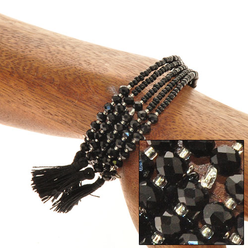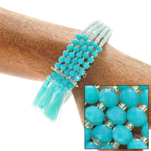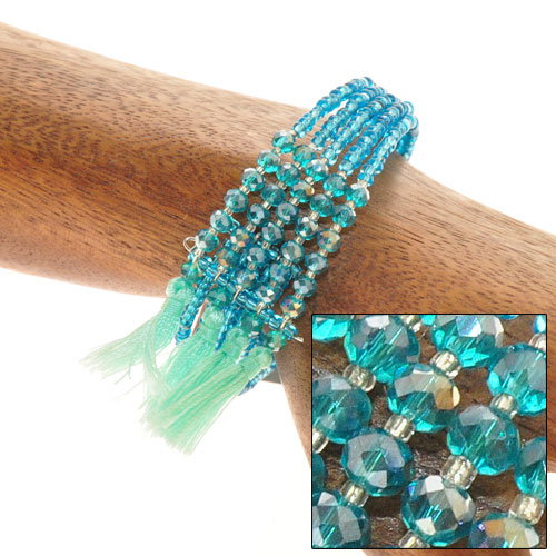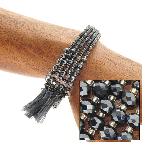 BRACCIALI KAKU RENGKANG CRYSTAL 5 LINE 4 TASSEL SILVER