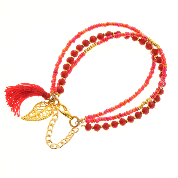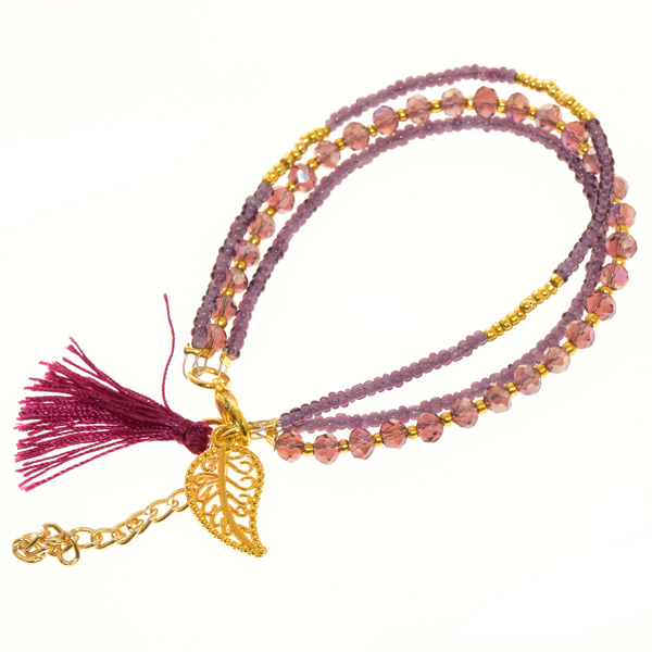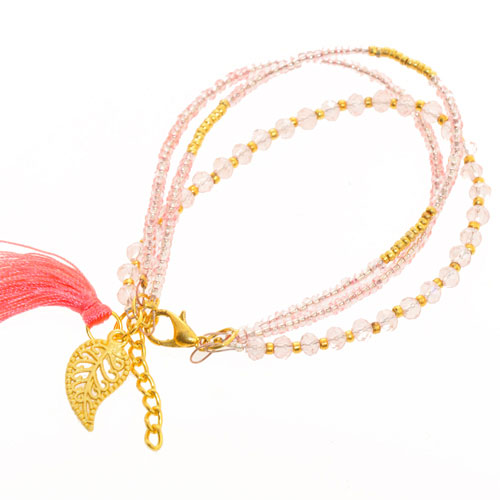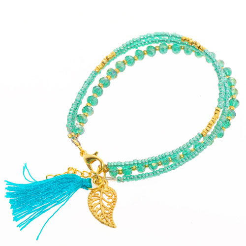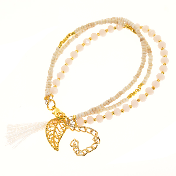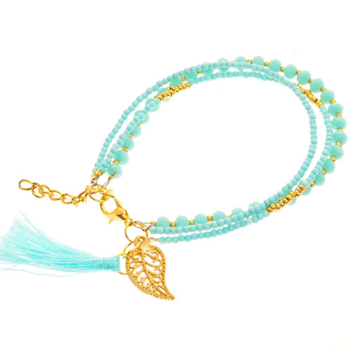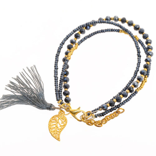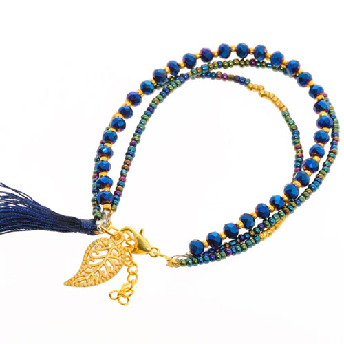 BRACCIALI TASSEL 3 LINE COMB. CRYSTAL STOPPER FOGLIE ORO