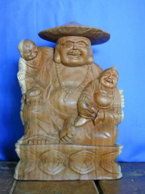 BUDDHA RIDENS 2 KIDS IN LEGNO SUAR CM 30