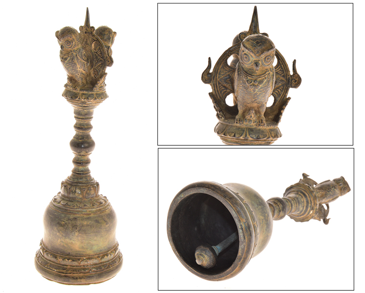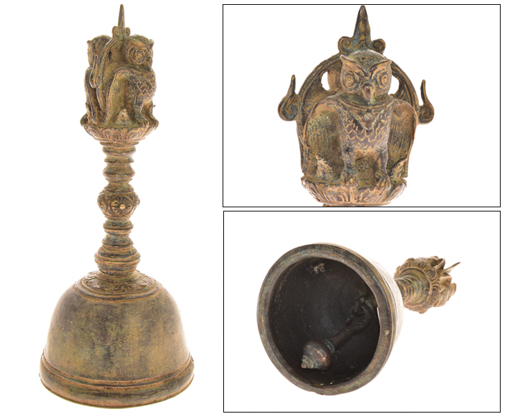 CAMPANA RITUALE DI PREGHIERA CON 2 GUFI CM 22X9