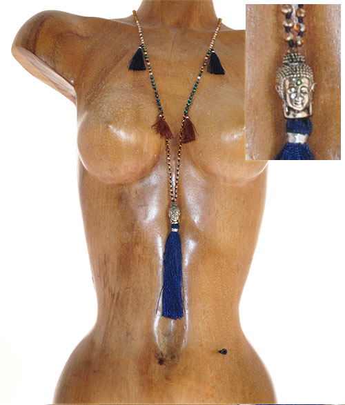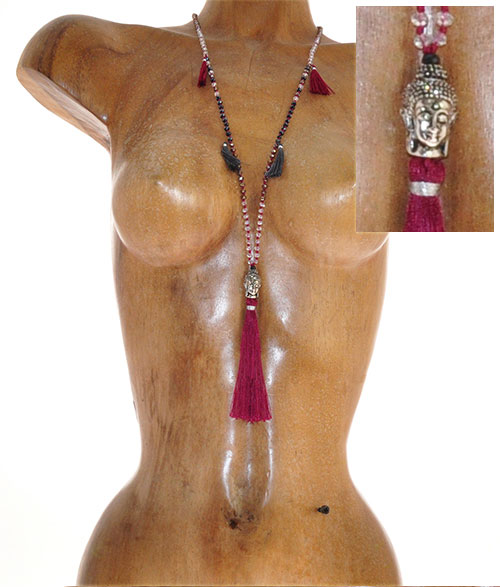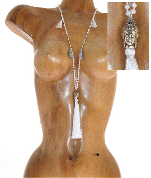 COLLANE BUDDHA SILVER HEAD FULL CRYSTAL TASSEL 4 SAMPING