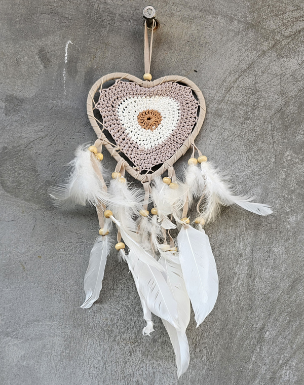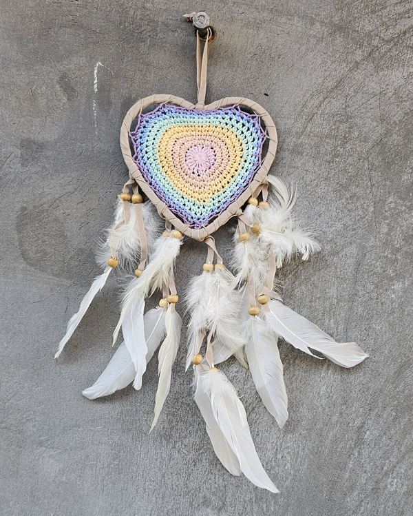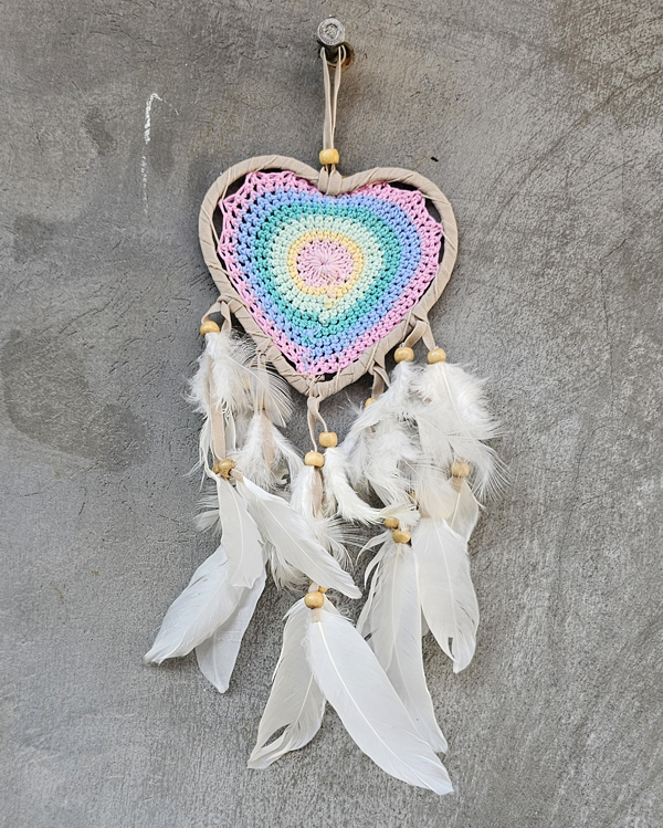 DREAM CATCHER UNCINETTO A FORMA DI CUORE CON PIUME MULTICOLOR CM 12