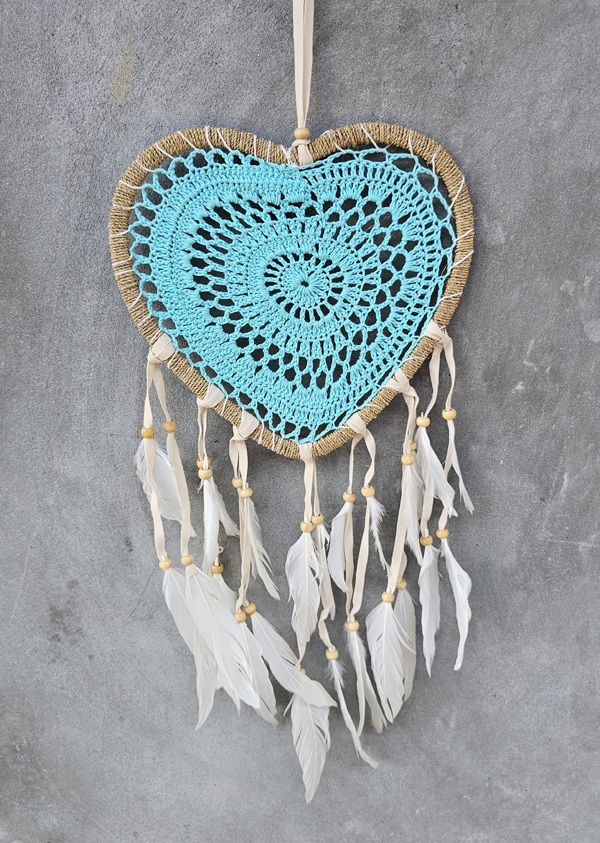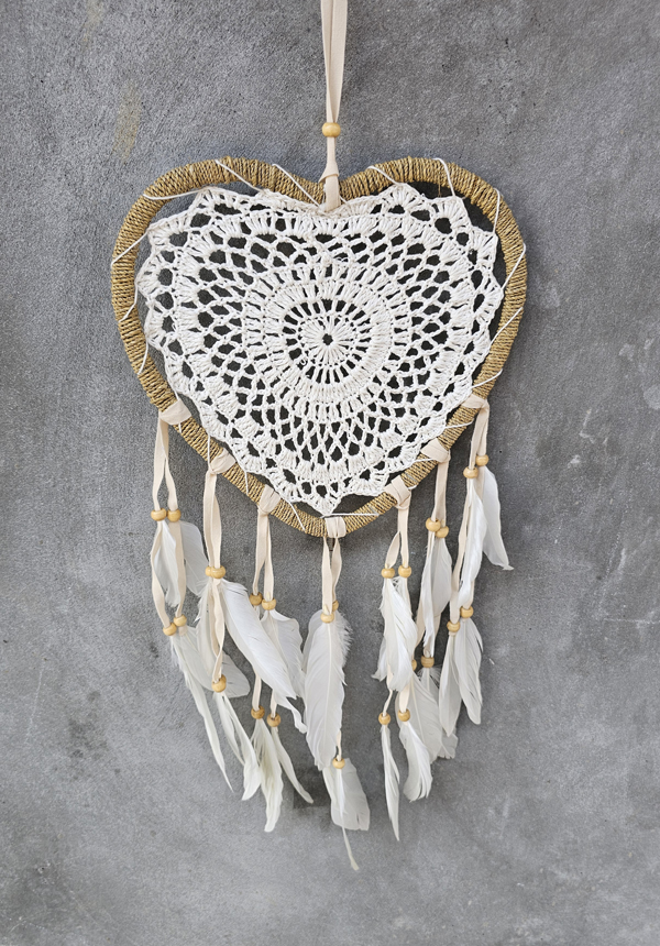 DREAM CATCHER UNCINETTO STRING PIUME CUORE 23 CM