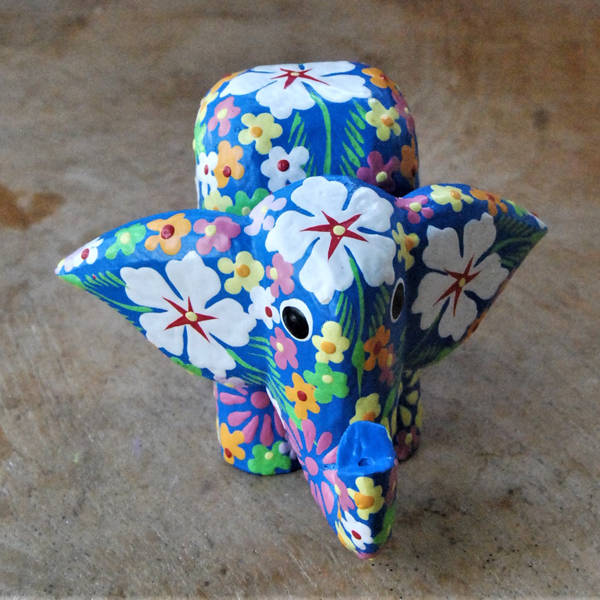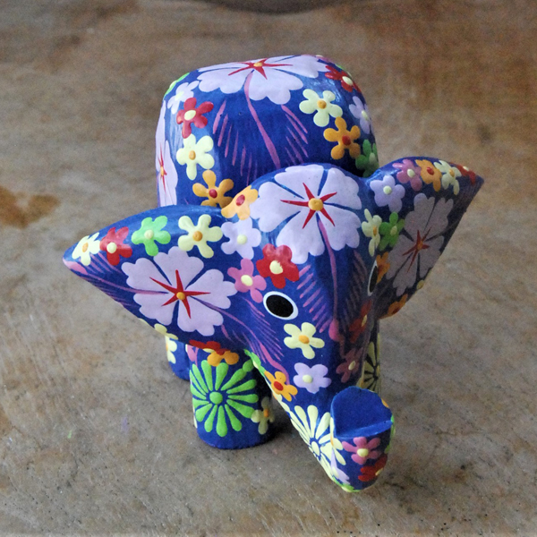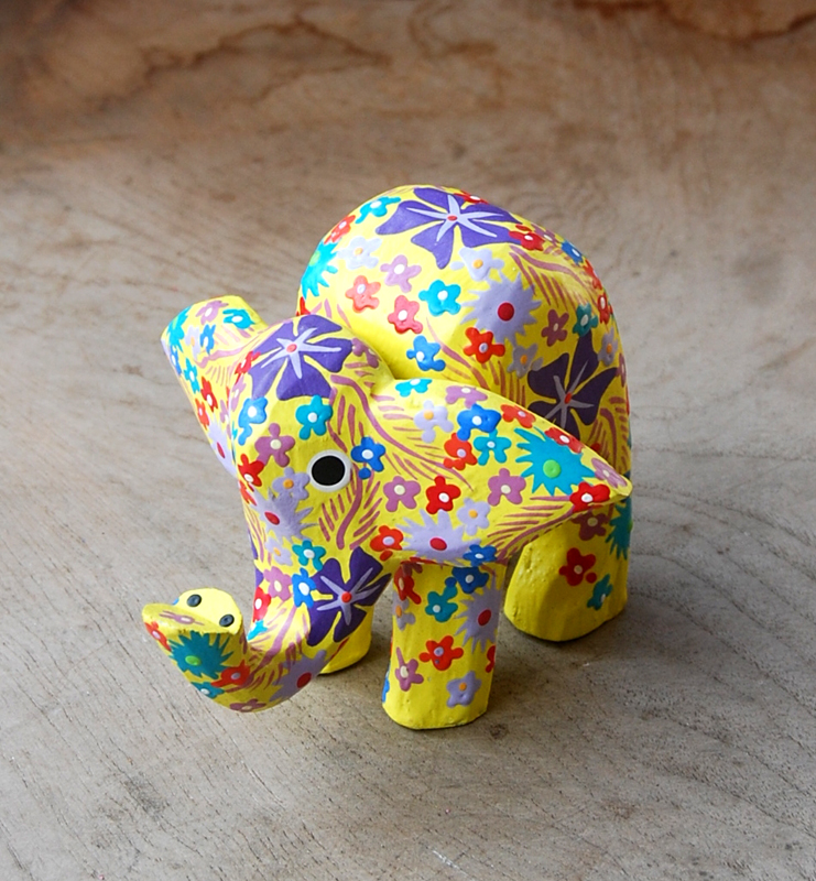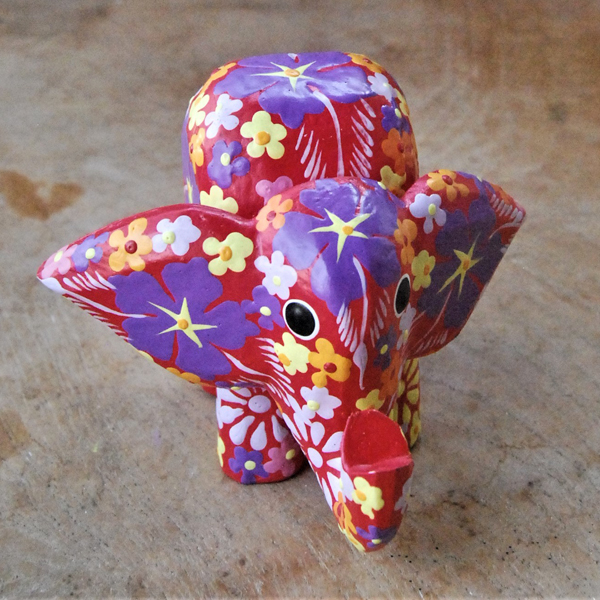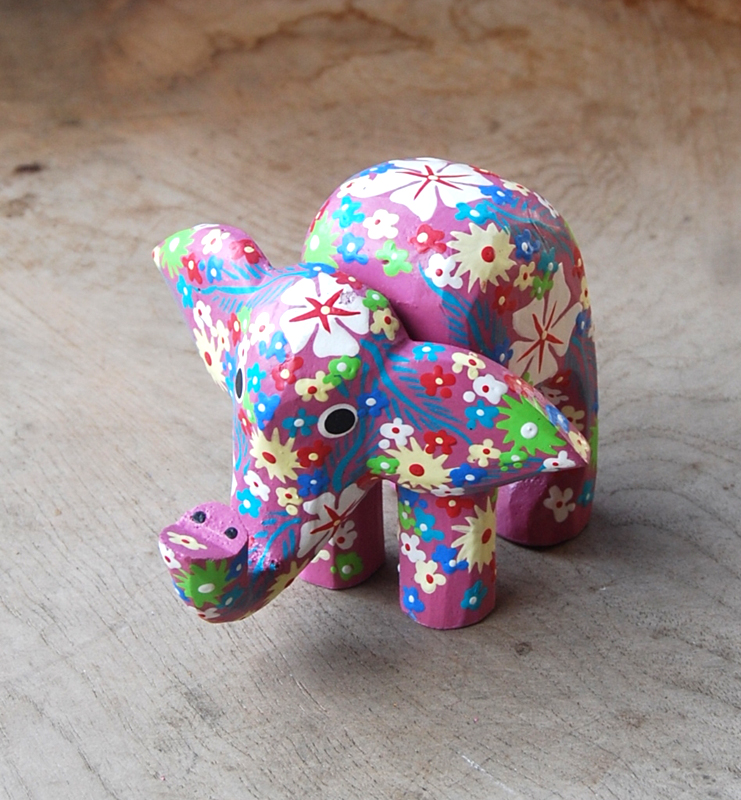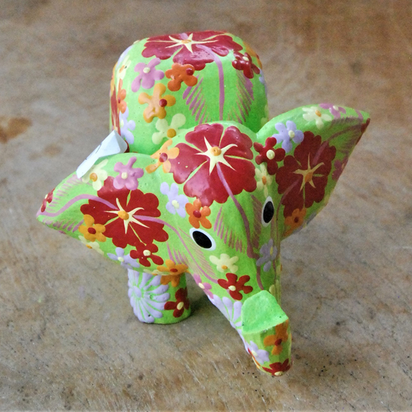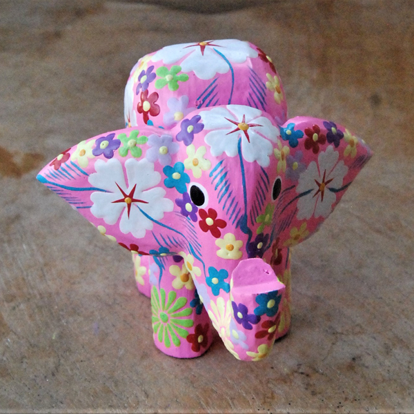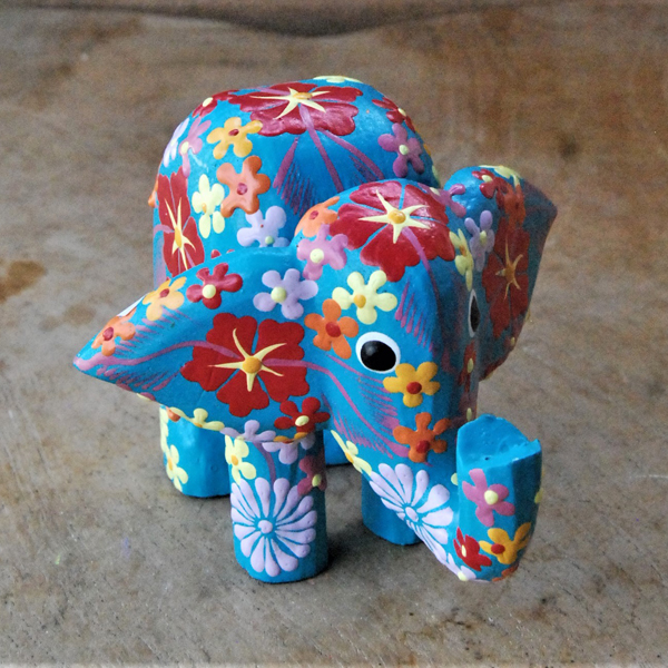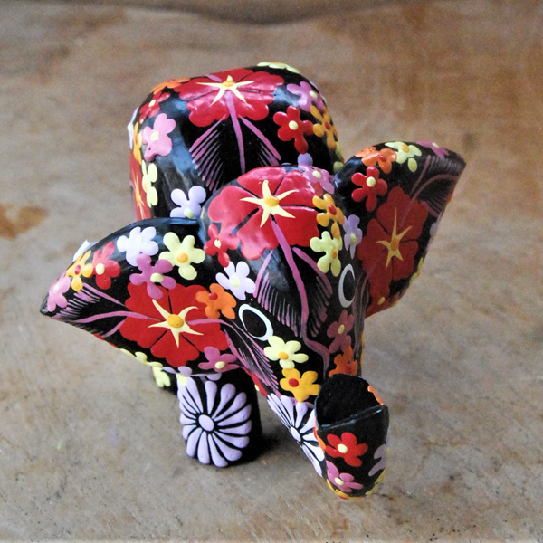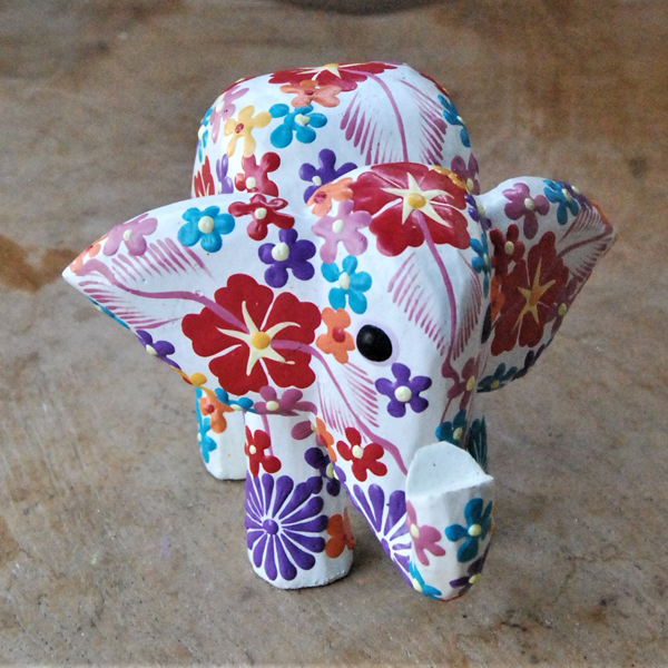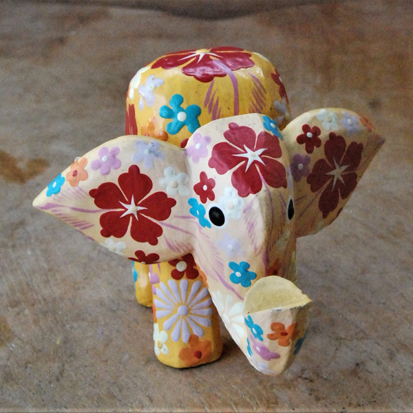 ELEFANTINO TESTA MOVIBILE DESTRA SINISTA DIPINTO IN LEGNO A FIORI CM