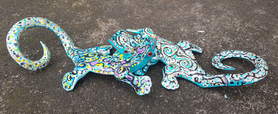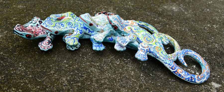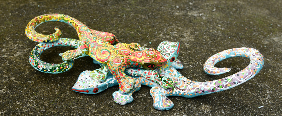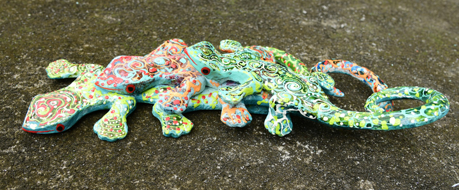 GECKO FAMILY DA PARETE IN LEGNO DIPINTO CM 40
