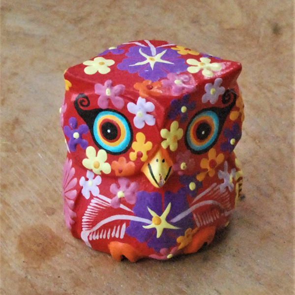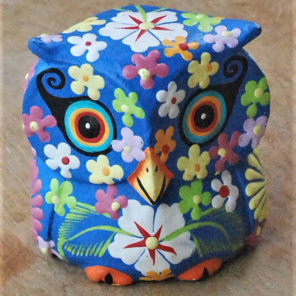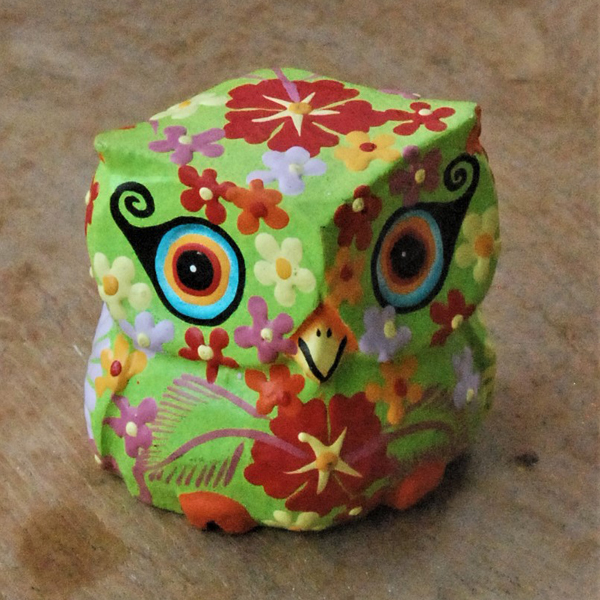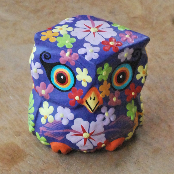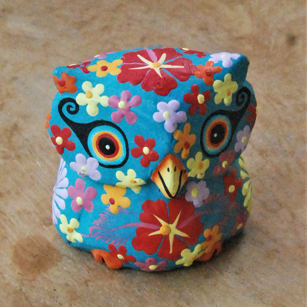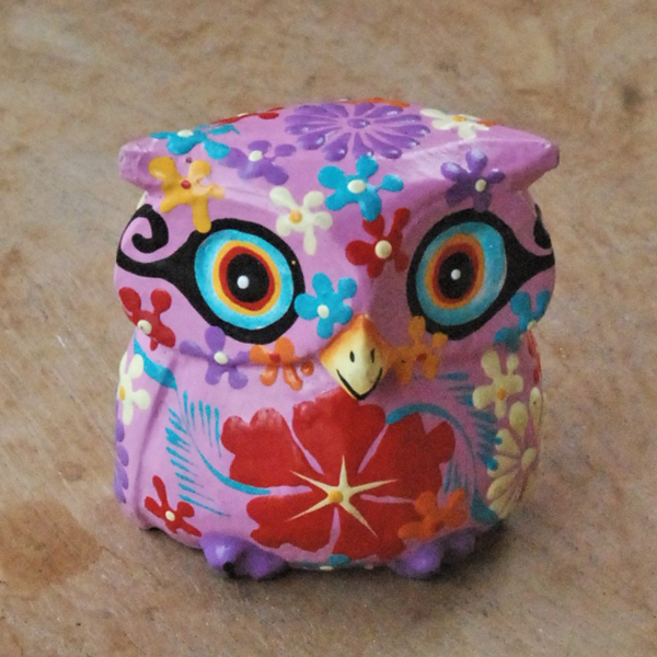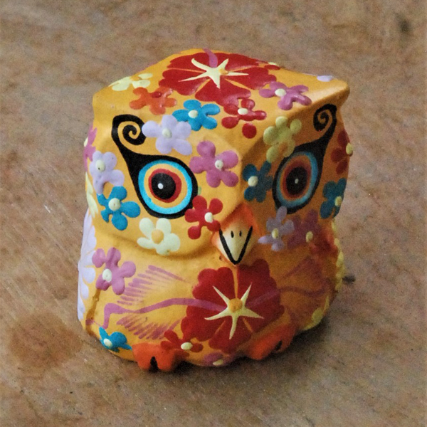 GUFO IN LEGNO DIPINTO CON FIORI CM 6,5