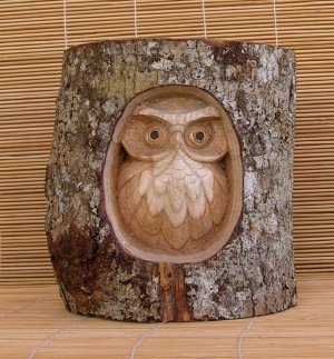 GUFO INTARSIATO SU TRONCO CM 20