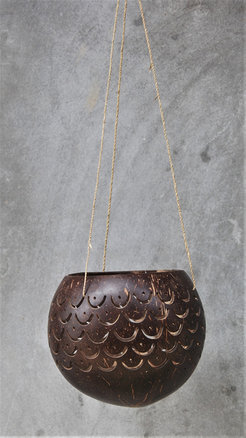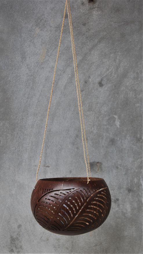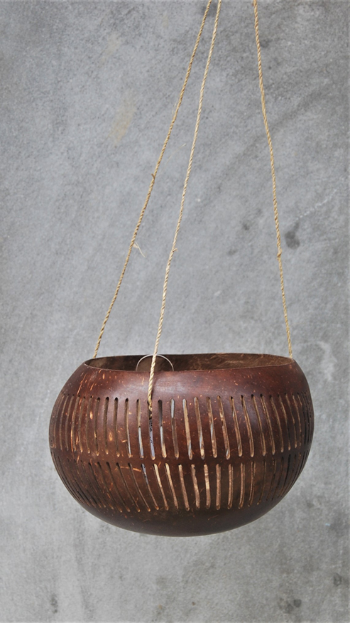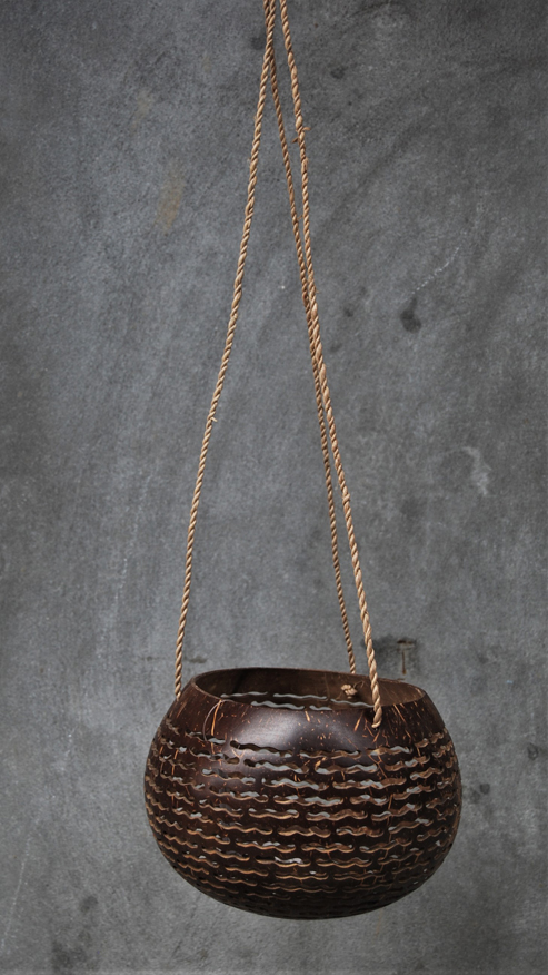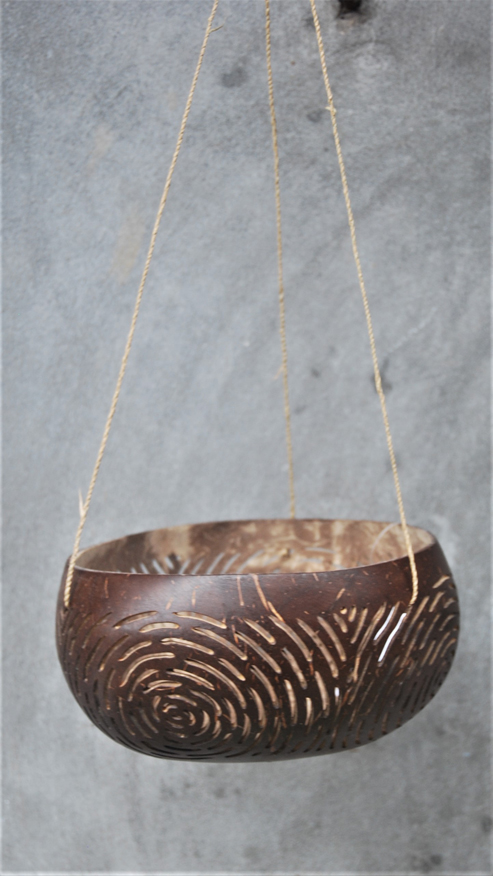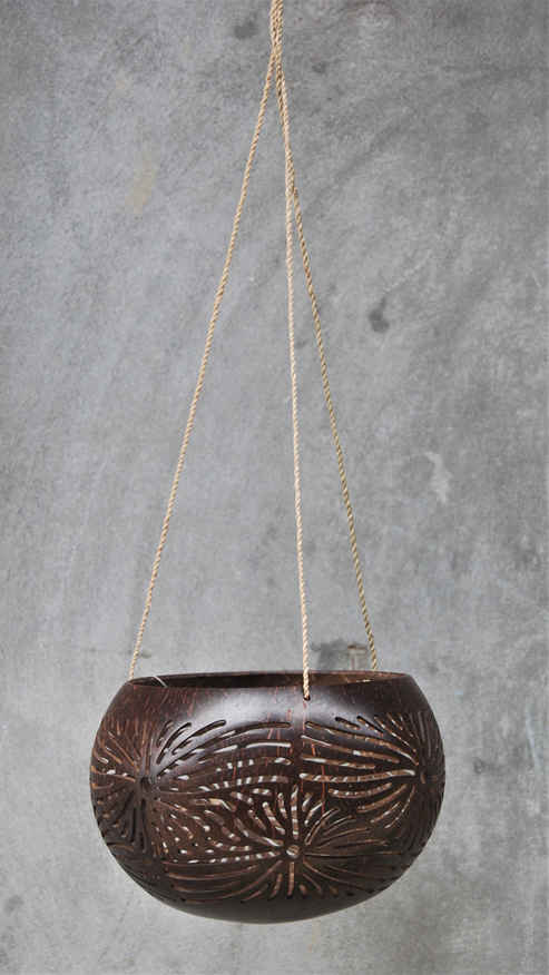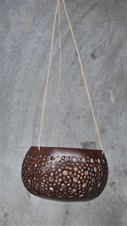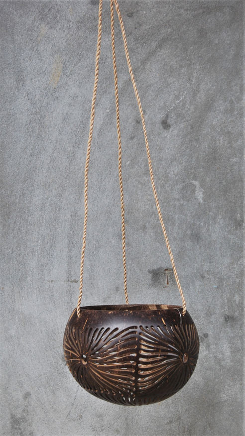 LANTERNA PORTACANDELE IN NOCE DI COCCO NATURALE GRANDE CON MOTIVO FIORI