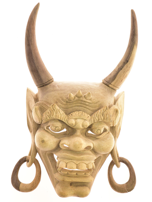 MASCHERA DEMONE CON CORNA E ORECCHINI SOPRACCIGLIA 19X32 CM