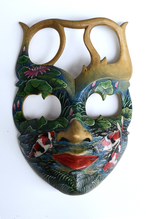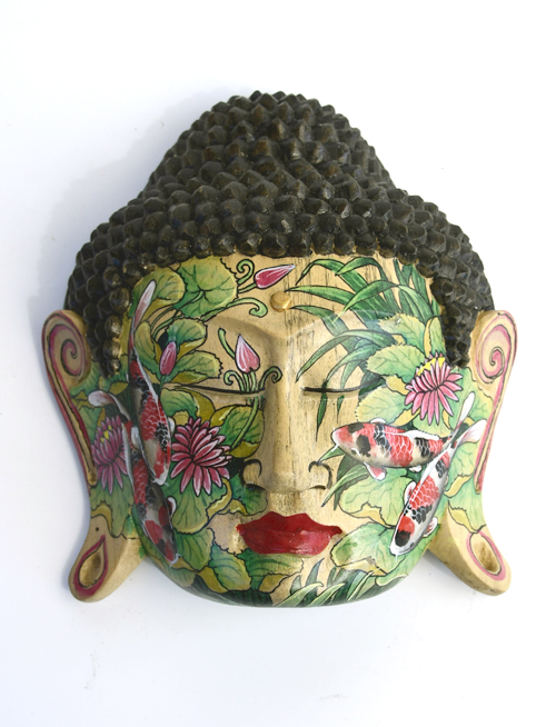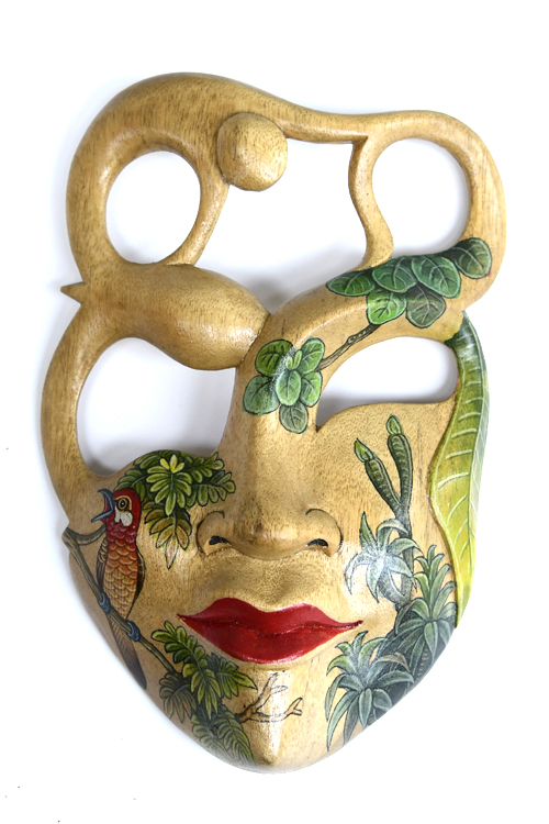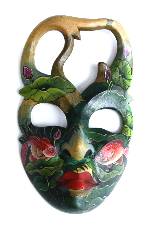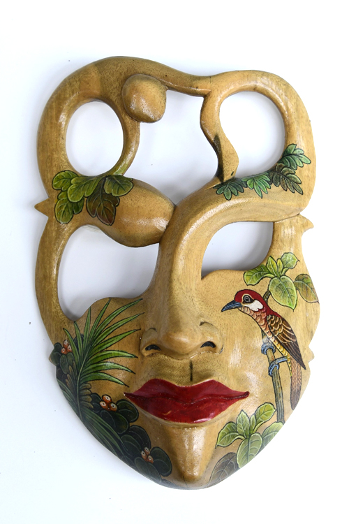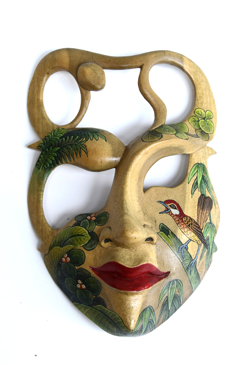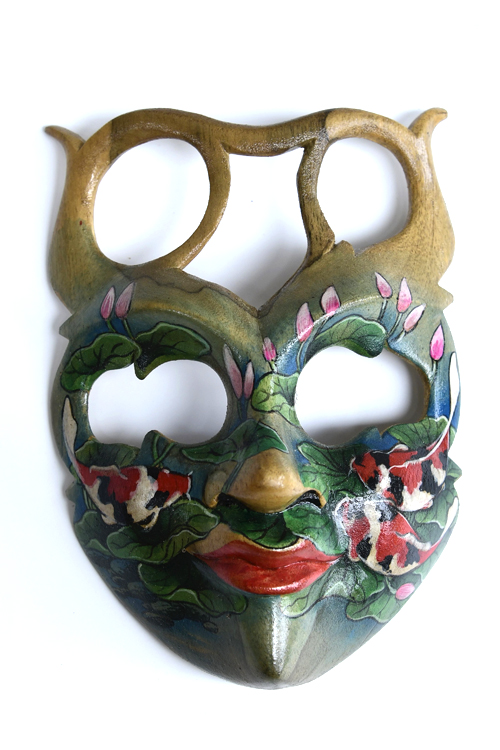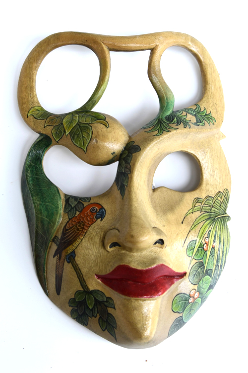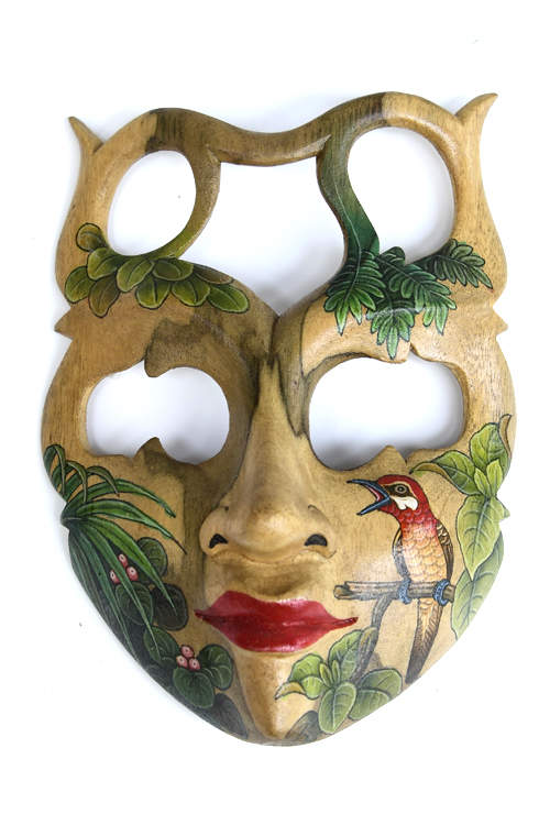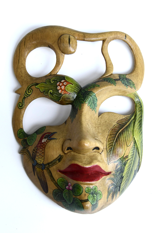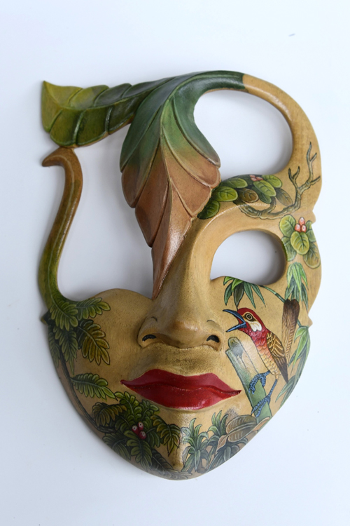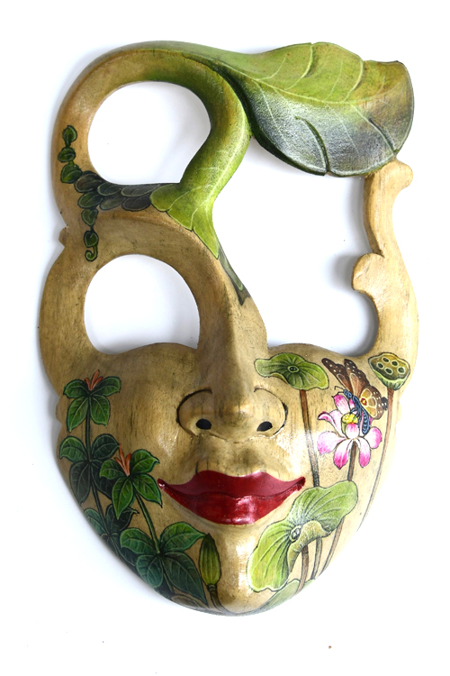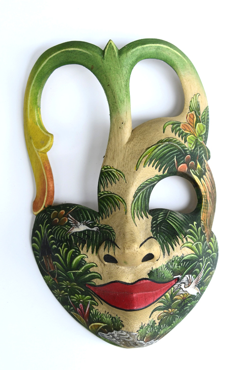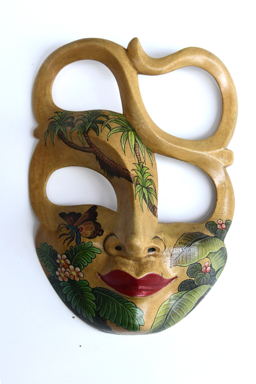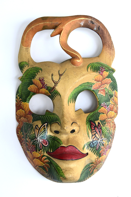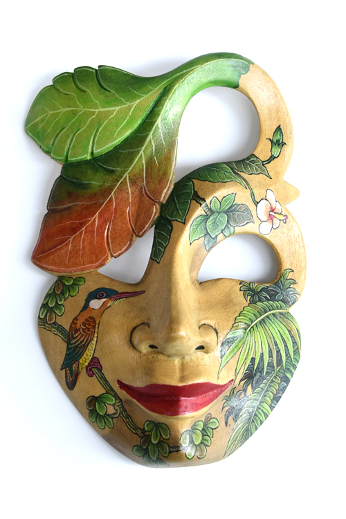 MASCHERA DIPINTA IN LEGNO DI HIBISCUS CM 17