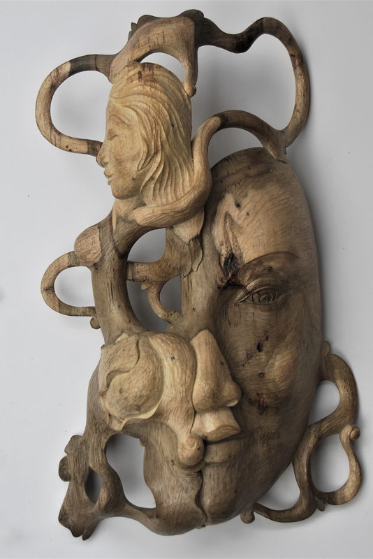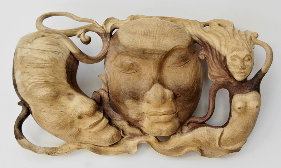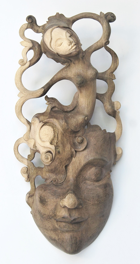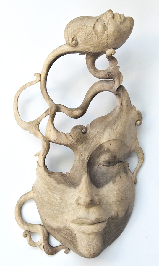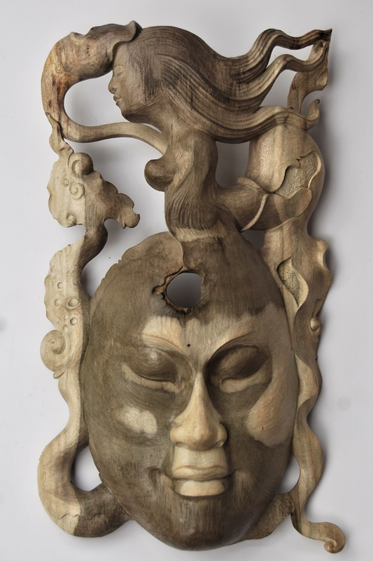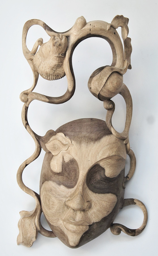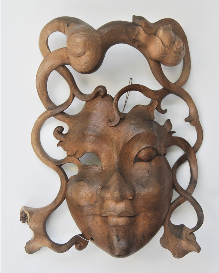 MASCHERA LADY CON RICCIOLI FOGLIE E ASTRATTO CM 31X18