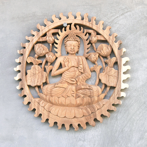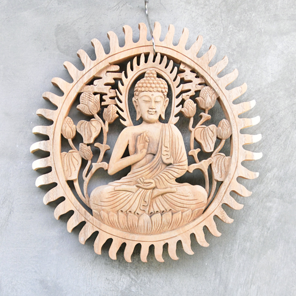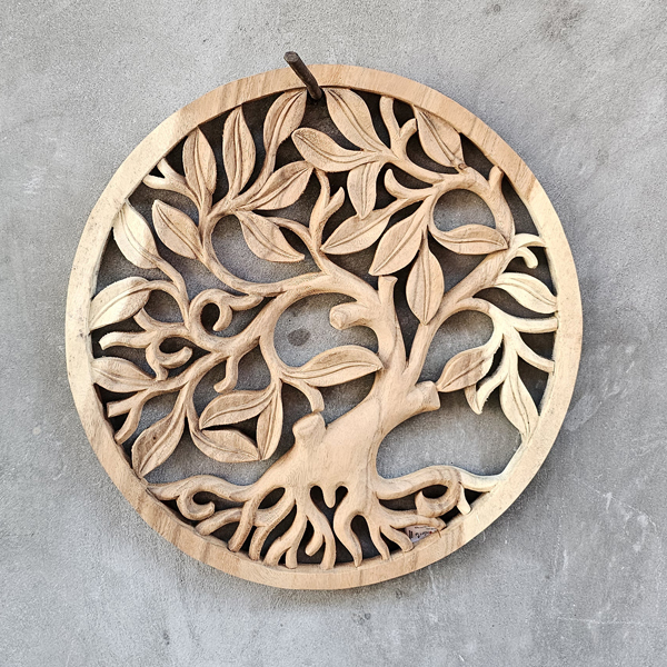 PANNELLO IN LEGNO INTARSIATO MOTIVO MANDALA CM 42