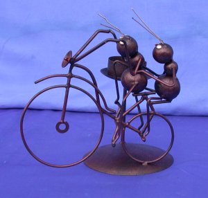 PORTACANDELE FERRO BATTUTO FORMICHE IN BICICLETTA