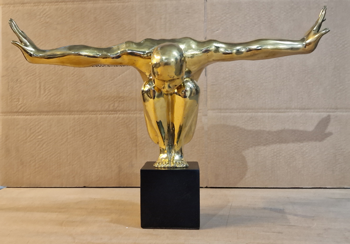 SCULTURA IN METALLO DORATO UOMO CON BRACCIA APERTE CM 40X70