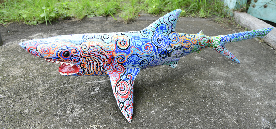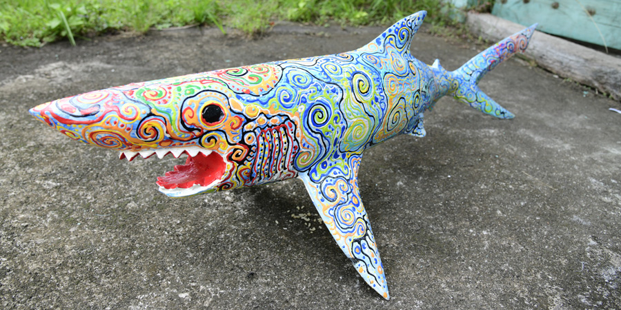 SQUALO DIPINTO ASTRATTO DA APPENDERE CM 100 CIRCA