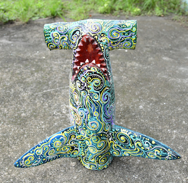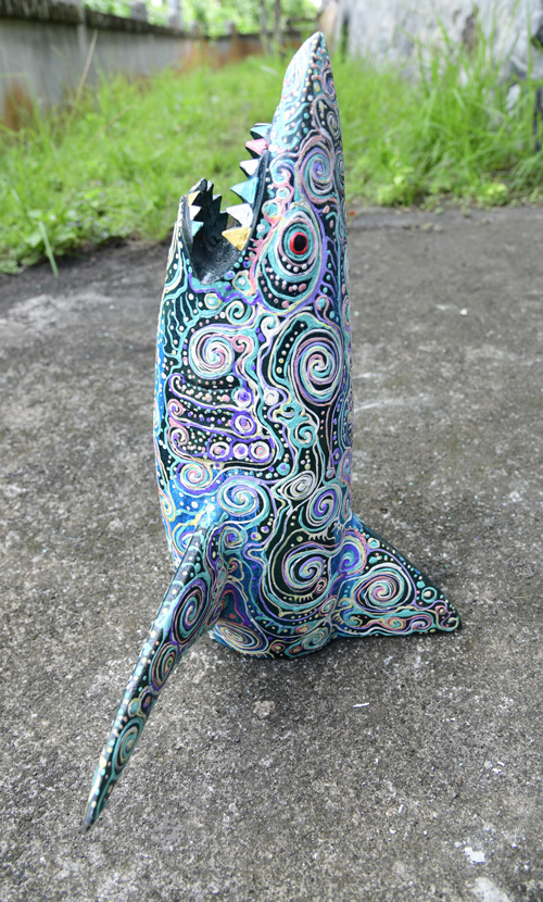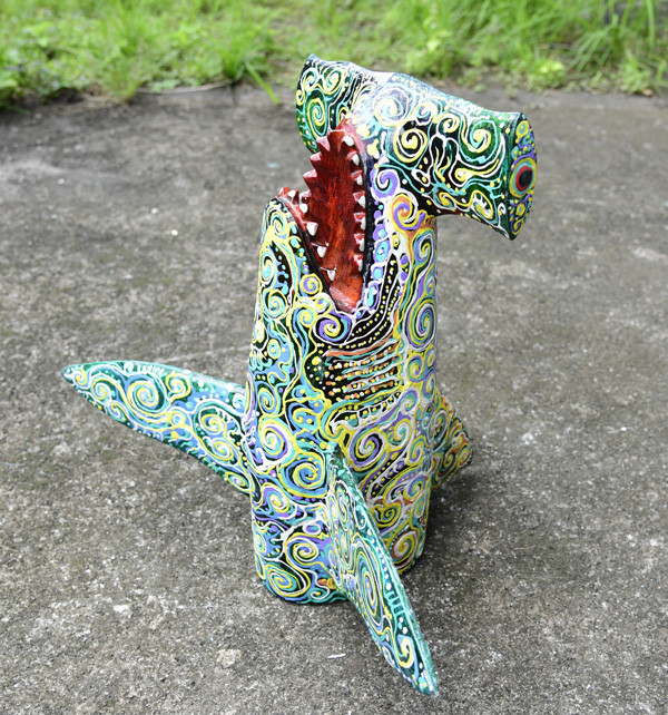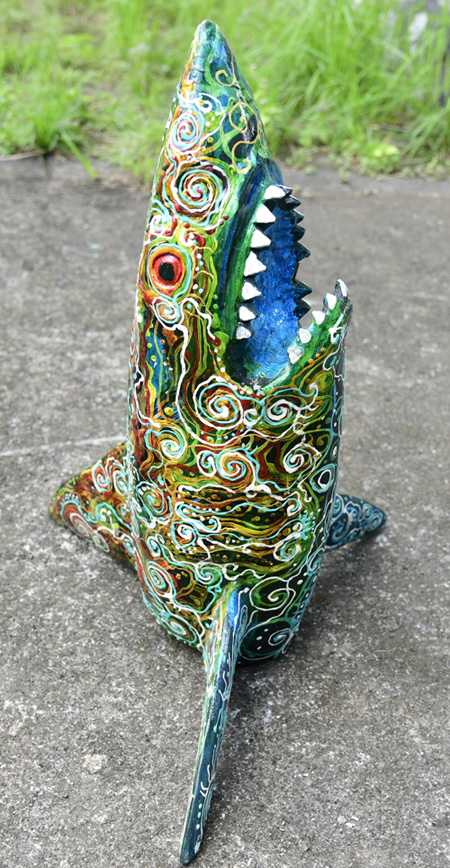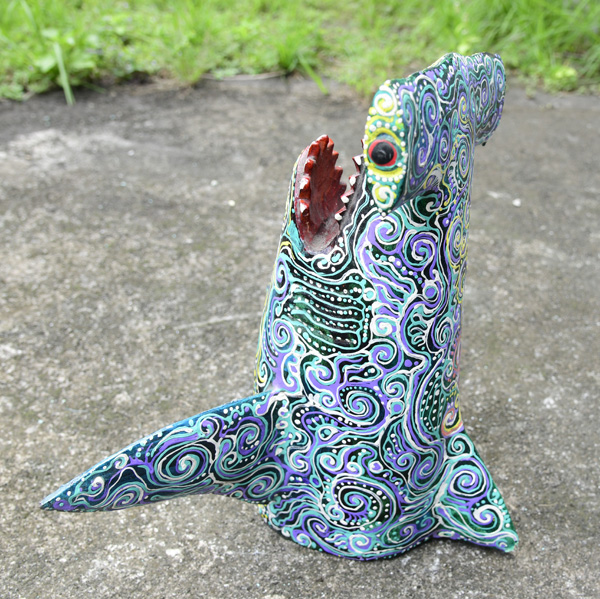 TESTA DI SQUALO IN LEGNO DIPINTO DA PARETE CM 40X20