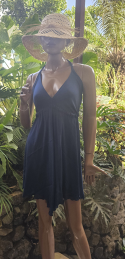 VESTITITNO CORTO CON SPALLINE REGOLABILI A NODO IN RAYON DI PRIMA QUALITÀ MODELLO DINA COLORAZIONE TINTA UNITA