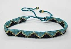 BRACCIALE CON PERLINE GIAPPONESI 15/0 A TELAIO 5 FILI MOTIVO GUNUNG, CHIUSURA REGOLABILE